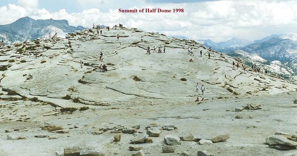 The top of Half Dome in 1998. There's not a cairn in sight!