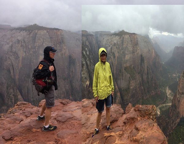 In the clouds at the pinnacle of Observation Point. By the time we reached the top it was noticeably colder and raining.